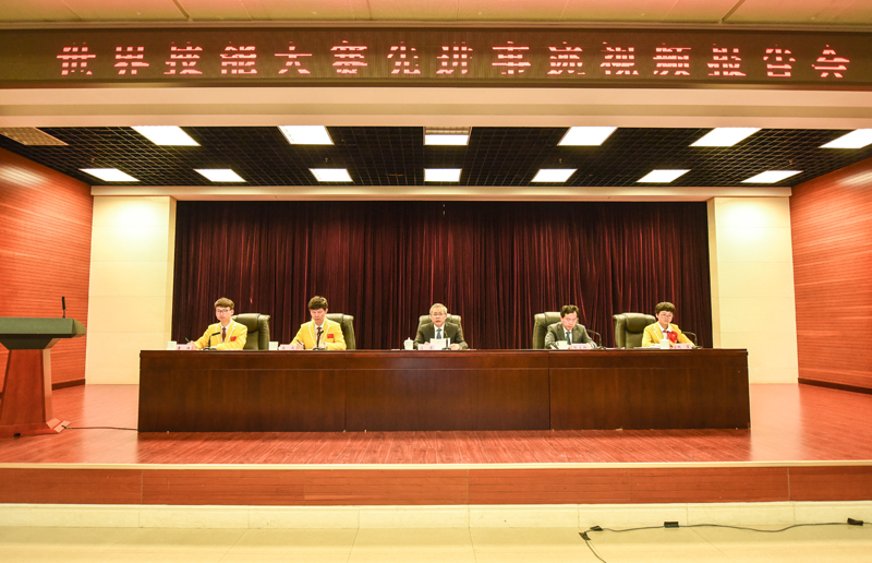 视频报告会上,第44届世界技能大赛阿尔伯特·维达大奖获得者、工业机械装调项目金牌选手宋彪,服装技术项目金牌选手胡萍,工业控制项目金牌选手袁强作了事迹报告。